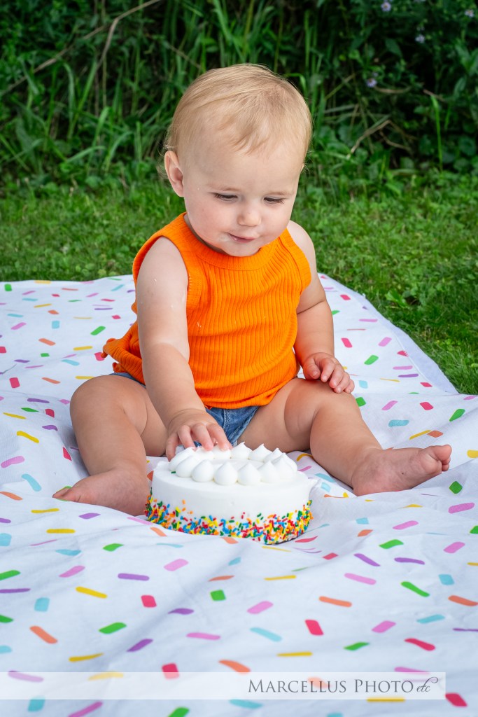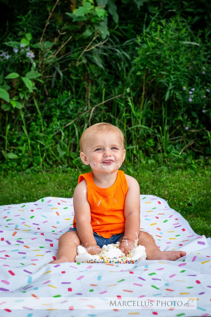 With a little help from dad soon she had her hands full of cake, and her mouth full of her hands.