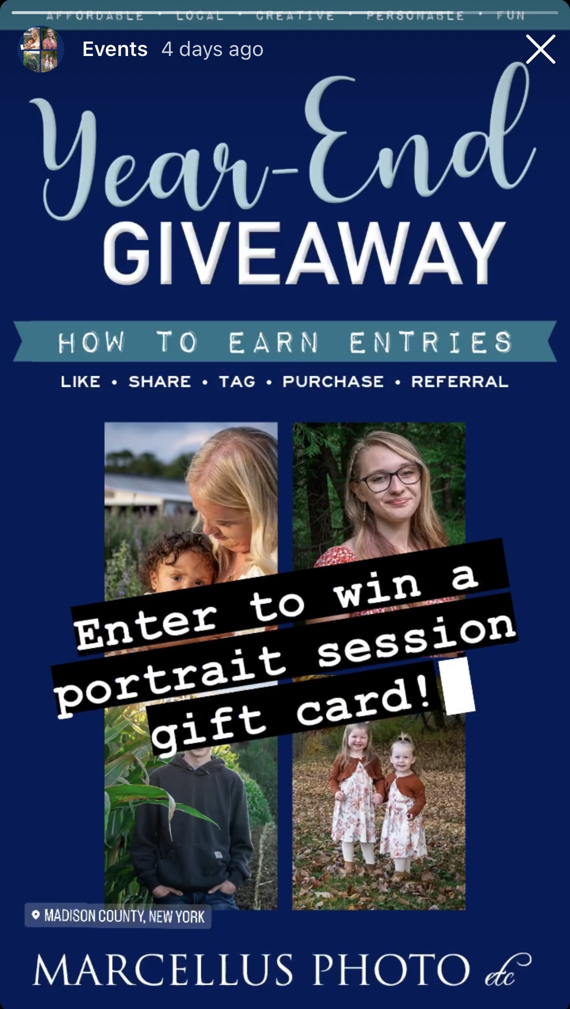 1 original post, 1 additional share of original post, and 1 matching FB/IG story (posted daily or to your specification).